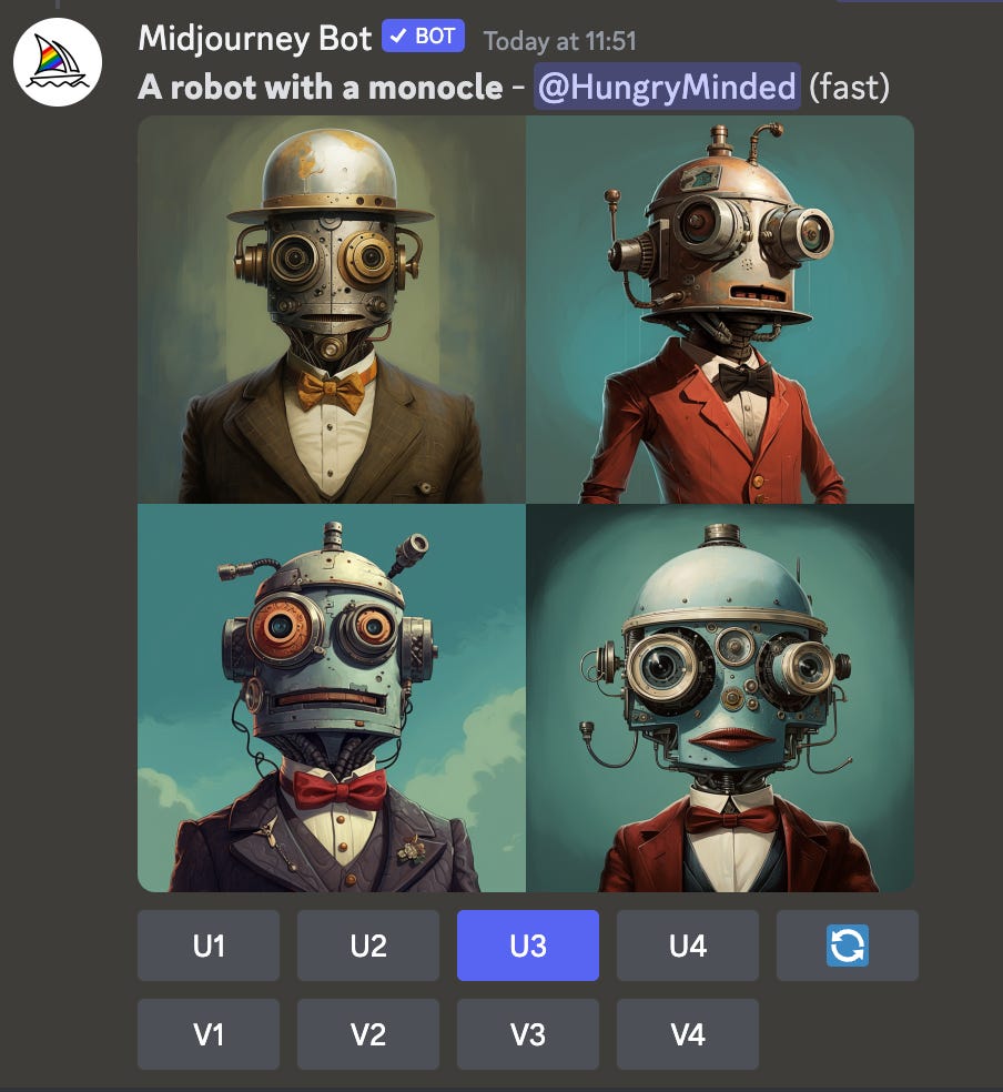 And upscale the image we like the most. In my case, it’s the third image, so I pressed the “U3”